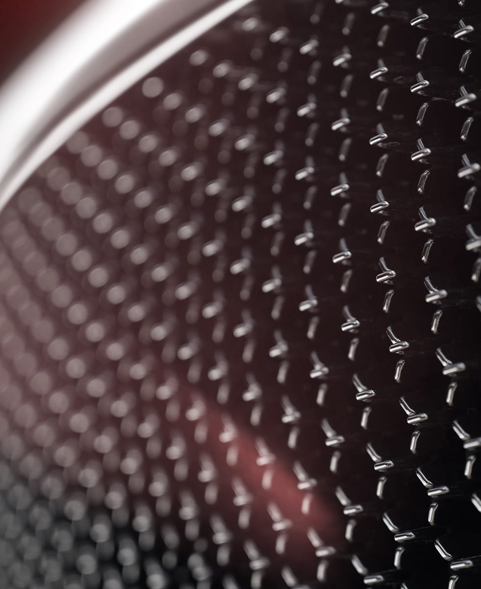 Exclusive to DBX S are a series of optional lightweighting innovations that bring not only assertive looks and sporting character but also remove up to 47kg of mass to deliver supreme dynamic capability. The 3.8 square-metre carbon roof is the largest ever fitted to an Aston Martin. It removes over 18kg of mass from the highest point of DBX meaning a lowered centre of gravity and enhanced dynamic reactions. 23” magnesium wheels liberate up to 19kg of unsprung mass and rotational inertia to improve steering feel, linear predictability and tracking over undulating surfaces to enhance already class-leading DBX steering. The carbon aero winglets around the DRLs and huge single-piece carbon rear panel save another 7kg.