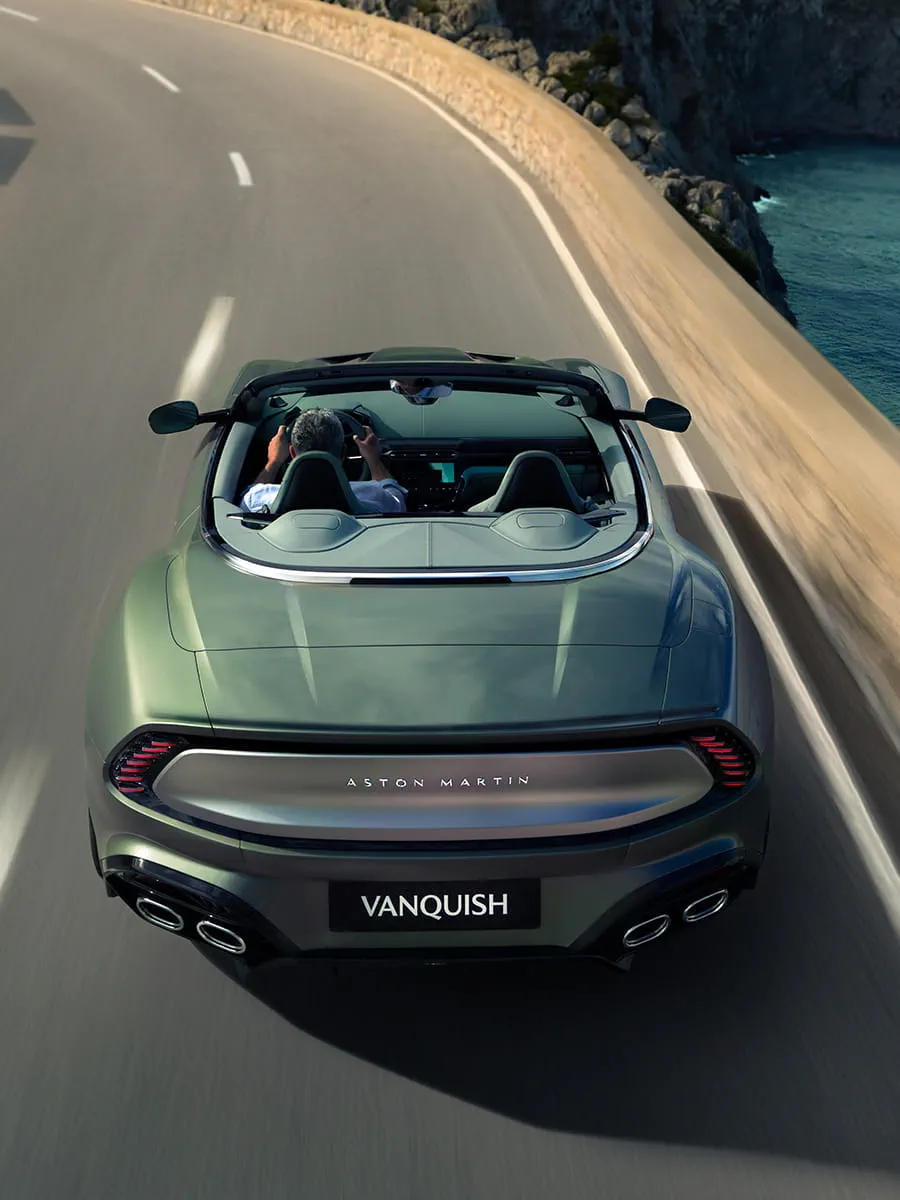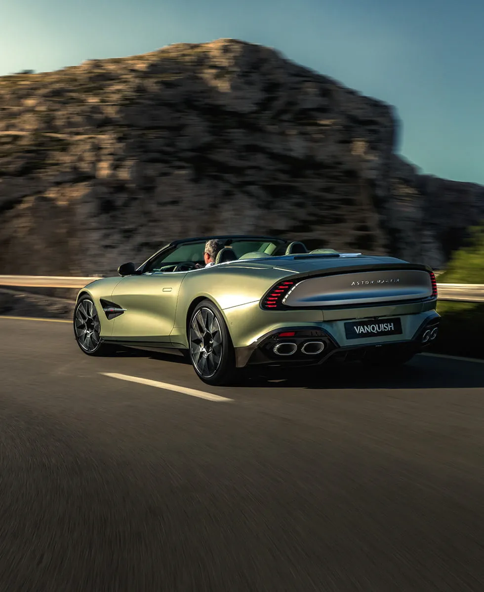 The captivating, new Vanquish Volante. The fastest, most powerful open-top-production Aston Martin to date. The pinnacle of top-down driving. Masterful poise meets merciless power. Harness the formidable front mid-mounted 5.2-liter twin-turbo V12. Immerse yourself in effortless elegance.